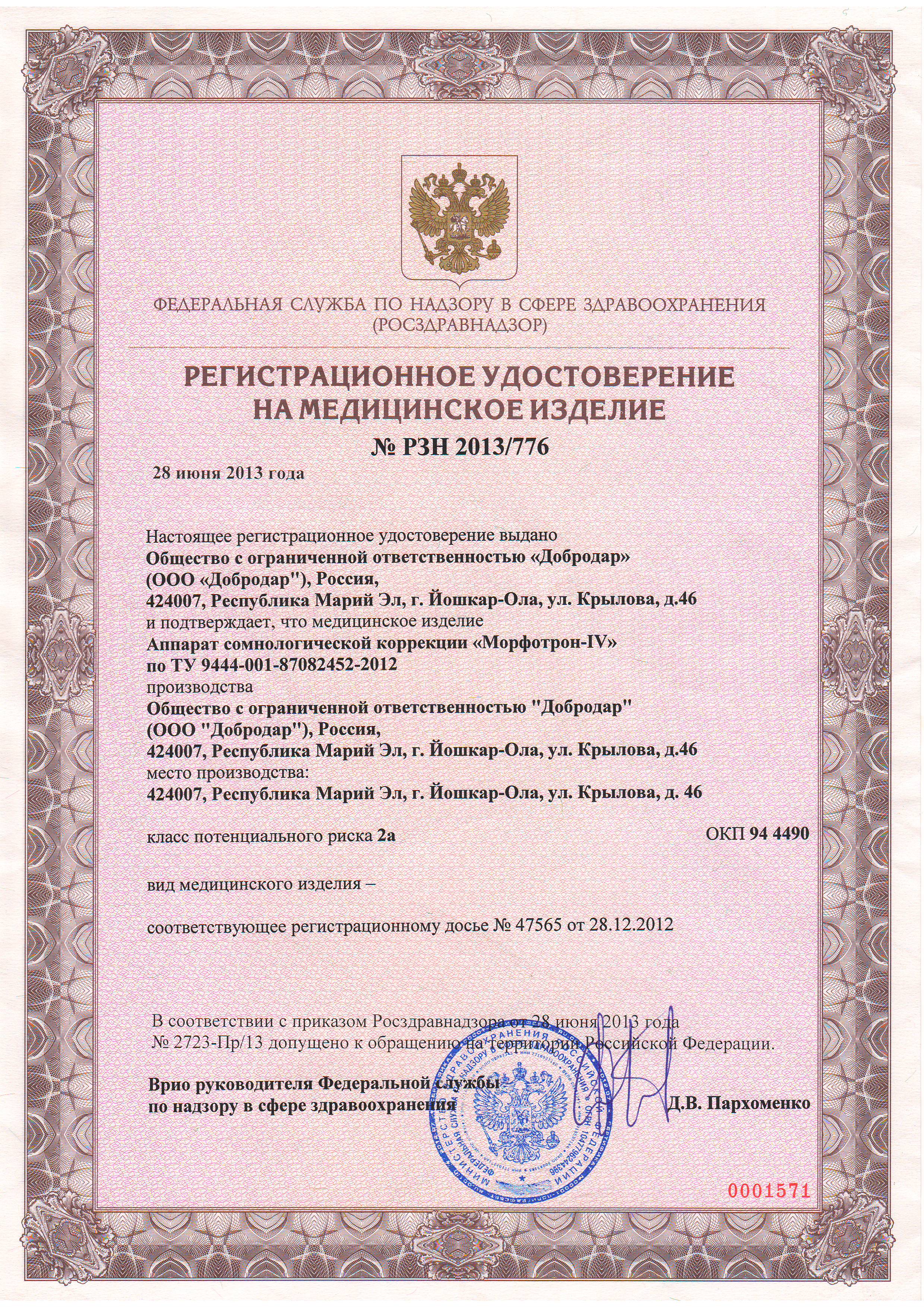 Регистрационное удостоверение
